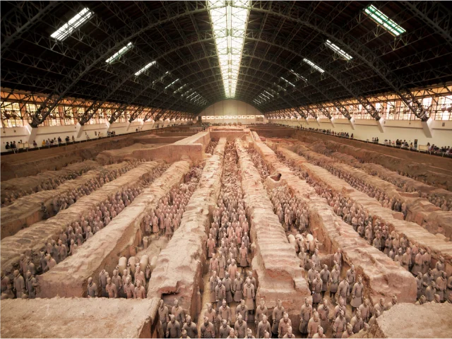 Morning tour to the greatest archaeological discovery of the century, more than 2,000-year-old Terracotta Warriors interred with the Emperor Qin Shi Huang. Included are the Circle Vision Movie and Bronze Chariot. Then you will sample the Xi’an dumpling dinner. Tonight, an optional tour is Tang Palace Banquet Song and Dance Performance.